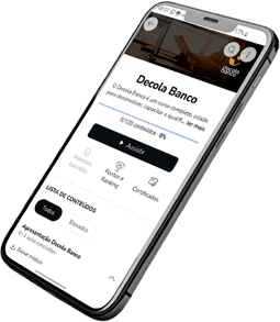 Todo o conteúdo fica disponível em um ambiente online, liberado por 2 anos para o decola banco completo e 1 ano para o decola Start. Você pode acessar pelo computador ou celular, a qualquer hora e em qualquer lugar.