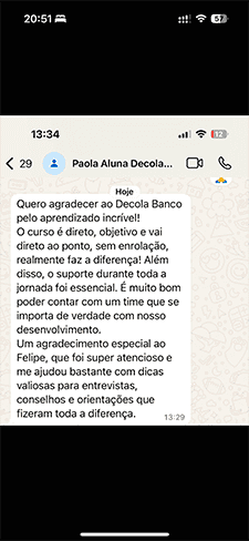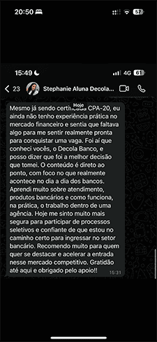 Com certeza! O Decola Start foi pensado como um degrau inicial. Você poderá migrar para o curso completo (Decola Banco) com condições especiais e aproveitar tudo o que já aprendeu.