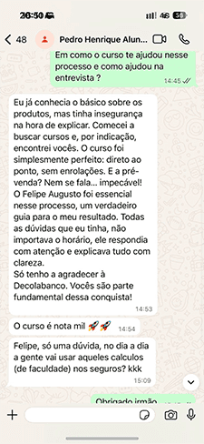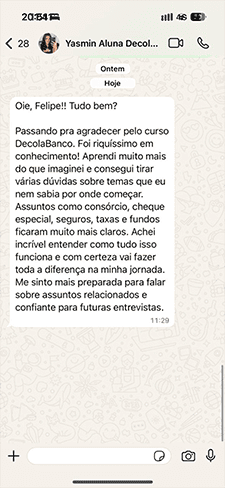 Contato direto com os professores via whats app somente para o curso decola banco completo.